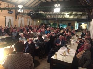 Der  Sall im Grünen Hof ist voll.  Gespannt sind die Zuhörer auf die aktuellen Daten zu den Flugbewegungen. Interessant sind auch die Entwicklungen zum Thema Erneuerung von Lärmschutzfenstern. Diese ist offenbar Privatsache.