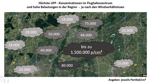 Vertreter der CSU bezweifeln die gesundheitlichen Risiken, misstrauen den UFP-Messgeräten und verweisen auf die UFOPLAN- Projekte, die sich zwar auf den Frankfurter Flughafen konzentrieren, aber Modellcharakter auch für München haben sollen. Dem ist allerdings entgegenzuhalten, dass dies Modellberechnungen sind, die durch Messergebnisse des Hessischen Landesamtes (HLNUG) inzwischen widerlegt wurden.