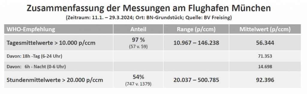 Details zur Messkampagne MUC 2024 –> Flughafen MUC UFP Konzentrationen